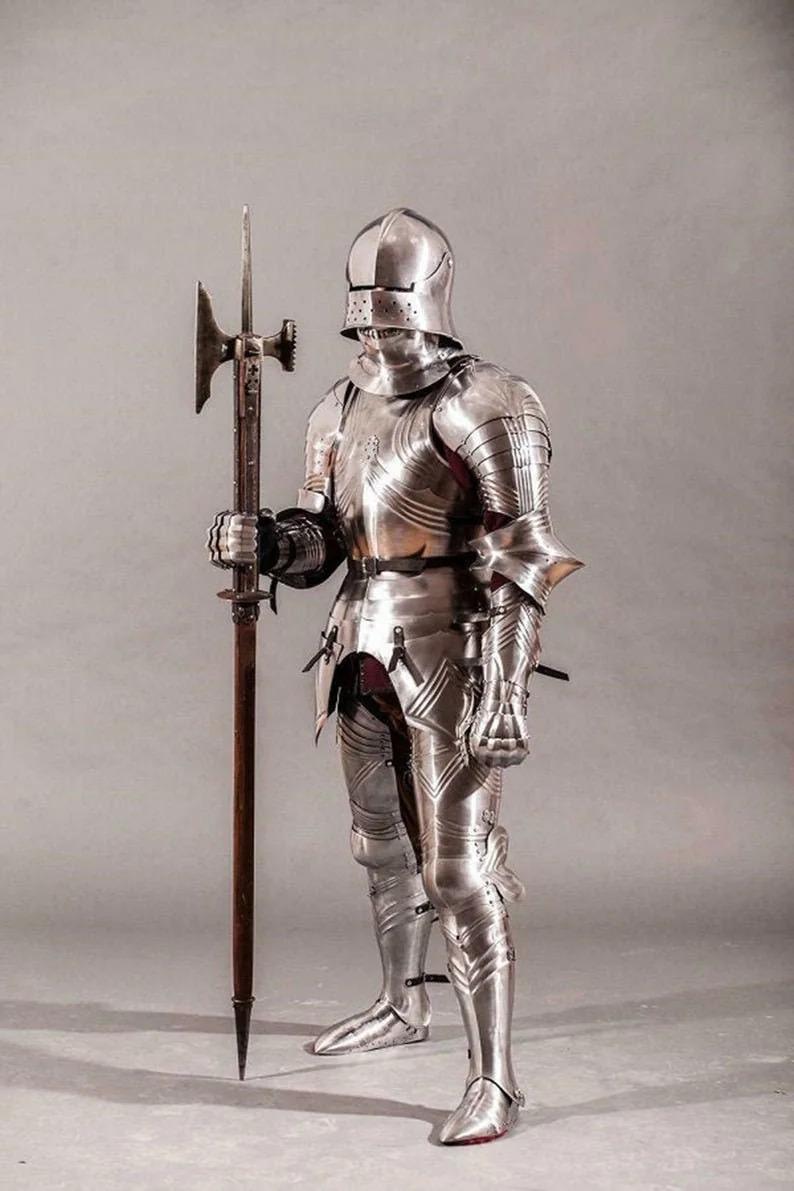 Pełne uzbrojenie rycerza to coś więcej niż narzędzie walki – to manifest siły, kunsztu i epoki, w której honor i miecz szły w parze. Na tej stronie prezentujemy wyjątkowe grafiki przedstawiające rycerzy w kompletnych zbrojach, ukazanych z dbałością o detale historyczne i artystyczny klimat. Każda ilustracja to opowieść o walce, tradycji i estetyce wojennej – od lśniących pancerzy płytowych, przez kolczugi i naramienniki, aż po imponujące hełmy, herby i proporce. To wizualna rekonstrukcja średniowiecznego pola bitwy, gdzie stal i symbolika splatają się w jedno. Zanurz się w świecie rycerskiego oręża i zobacz, jak wyglądała prawdziwa gotowość do walki o honor i ziemię.
