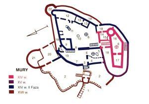 Mur obronny i fosa: Mury obronne otaczające zamek nadają mu wyrazisty charakter warowni obronnej. Chociaż wiele z nich uległo zniszczeniu i odbudowie w wyniku wojen i konfliktów, to nadal pozostają widocznym elementem architektury. Dodatkowo, zamek jest otoczony fosą, która w przeszłości pełniła funkcję obronną.