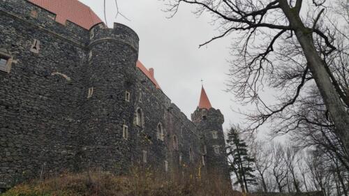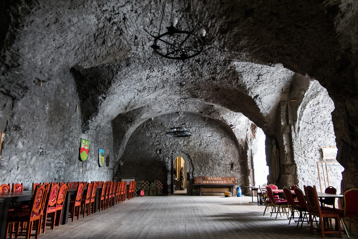 Struktura obronna: Zamek Grodziec pierwotnie został zbudowany jako warownia obronna, co jest widoczne w jego masywnych murach i solidnych fortyfikacjach. Wzniesiony na wzniesieniu, zamek dominuje nad otaczającą doliną, co czyniło go trudnym do zdobycia. Charakterystyczne baszty i wieże, wzmocnione masywnymi murami obronnymi, świadczą o pierwotnej funkcji warownej zamku.