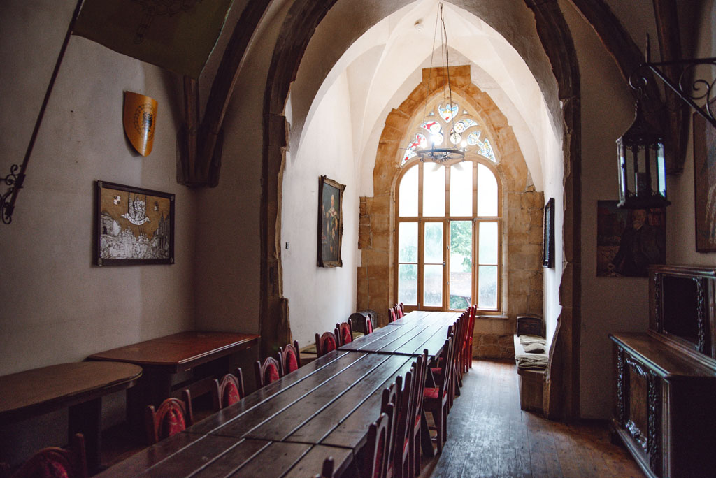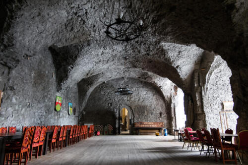 W środku zamku funkcjonuje klimatyczna restauracja dla gości.