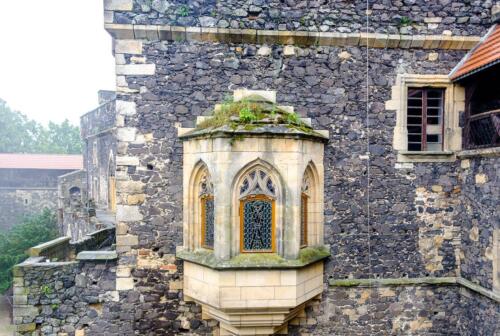 Eklektyczne połączenie stylów: W miarę przemian, jakie zamek przechodził w ciągu wieków, jego architektura ulegała różnym modyfikacjom. Dodawane elementy, takie jak renesansowe loggie czy barokowe zdobienia, wzbogacały pierwotny gotycki charakter zamku. Ta eklektyczność świadczy o wielu etapach rozbudowy i przebudowy warowni oraz o wpływie różnych epok i stylów na jej kształt.