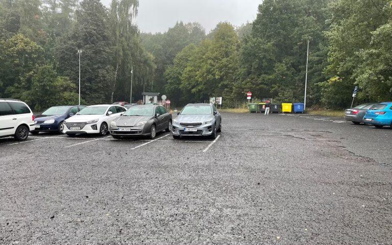 Pod zamkiem znajduje się duży strzeżony parking dla przyjezdnych.
