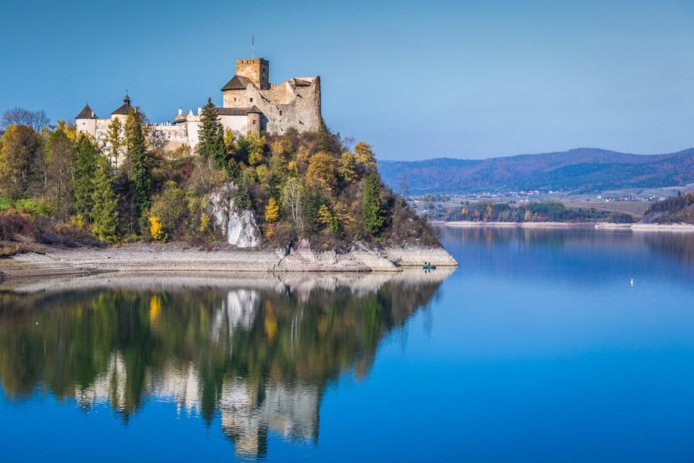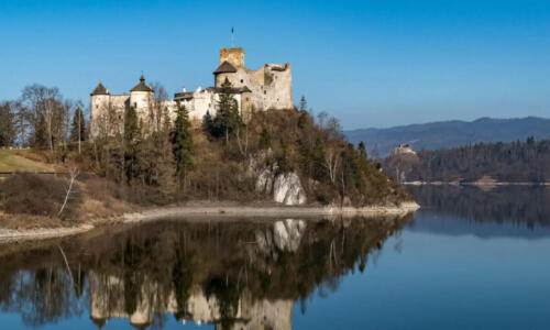 Położenie i otoczenie: Zamek Niedzica wznosi się dumnie na wzgórzu, z widokiem na urokliwe jezioro Czorsztyńskie i otaczające go góry, w tym malownicze Pieniny. To położenie nad rzeką Dunajec i w otoczeniu przyrody czyni zamek nie tylko atrakcją historyczną, ale także jednym z najpiękniejszych miejsc w Polsce.