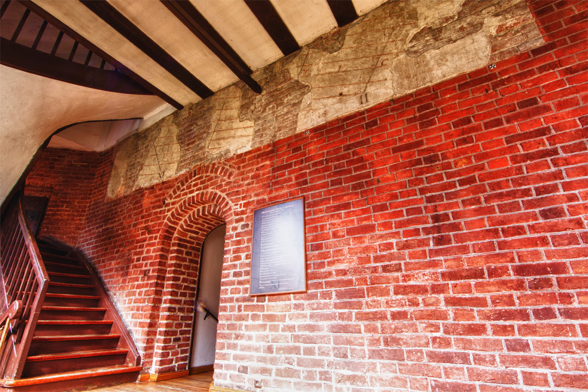 W północnym skrzydle zachowane są gotyckie belki stropowe z 1370 i 1373 r. W skrzydle południowym belki stropów i hurdycji wykonane zostały z drewna ściętego w latach 1425-29. Zdolności obronne hurdycji nigdy nie zostały wypróbowane.