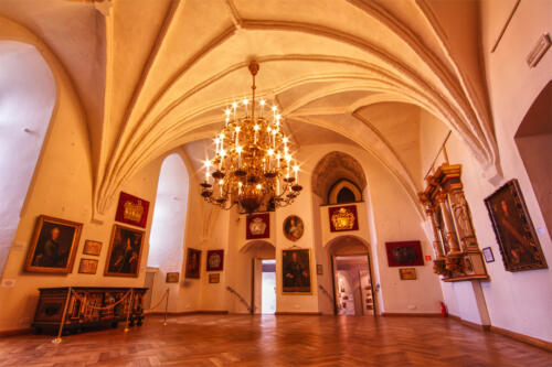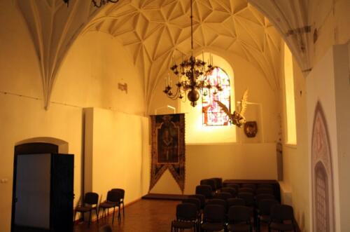 sieciowym, a przy nim przybudówka mieszcząca zakrystię oraz mieszkanie wikariusza zamkowego, zwane Izbą Ptasią.
